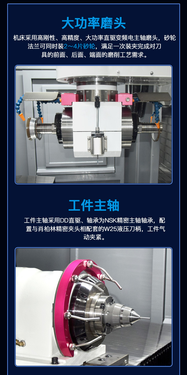 一、機(jī)床簡介1.應(yīng)用范圍:5軸5聯(lián)動(dòng)數(shù)控刀具磨床,適用于大直徑回轉(zhuǎn)類刀具的磨削和重磨,能在一次裝夾的情況下完成整個(gè)磨削和修磨過程,可加...