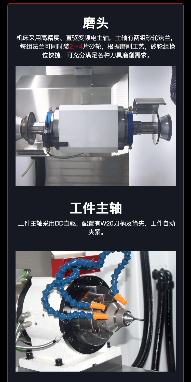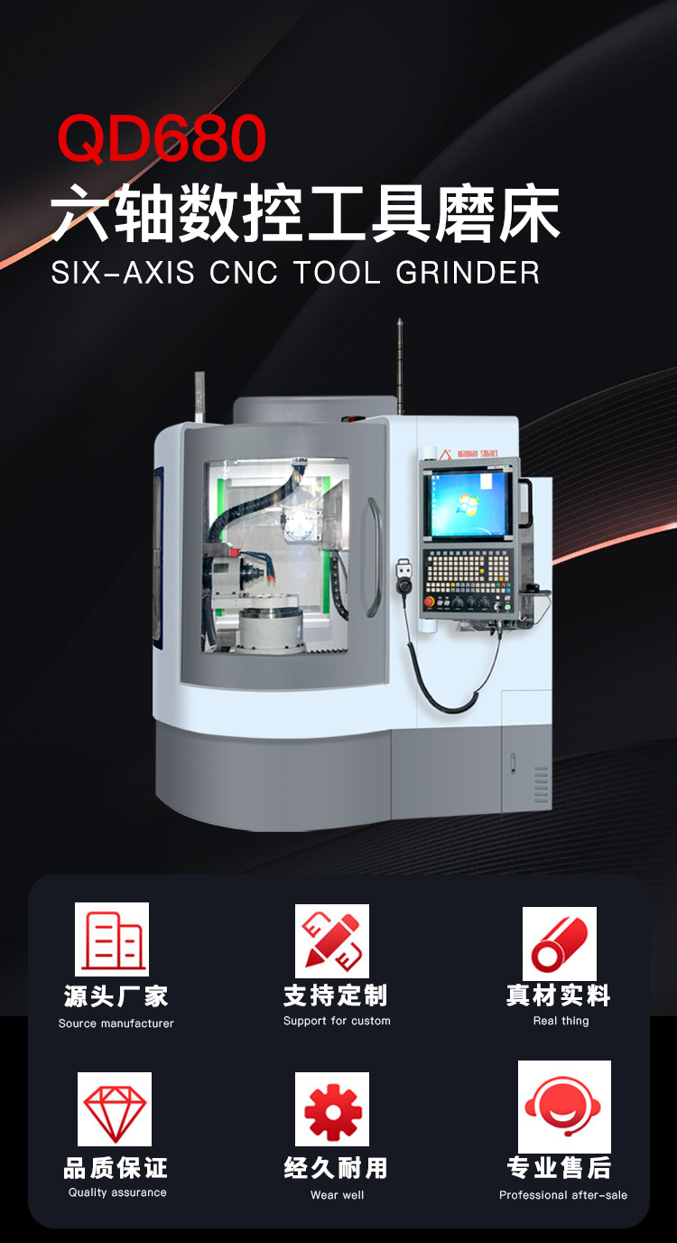 QD680六軸五聯(lián)動(dòng)數(shù)控工具磨床,適用于生產(chǎn)或修磨小規(guī)格銑削類(lèi)刀具、鉆削類(lèi)刀具、成形刀具等